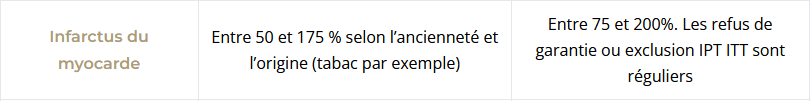 Quel est le niveau de surprime assurance emprunteur pour un infarctus ?